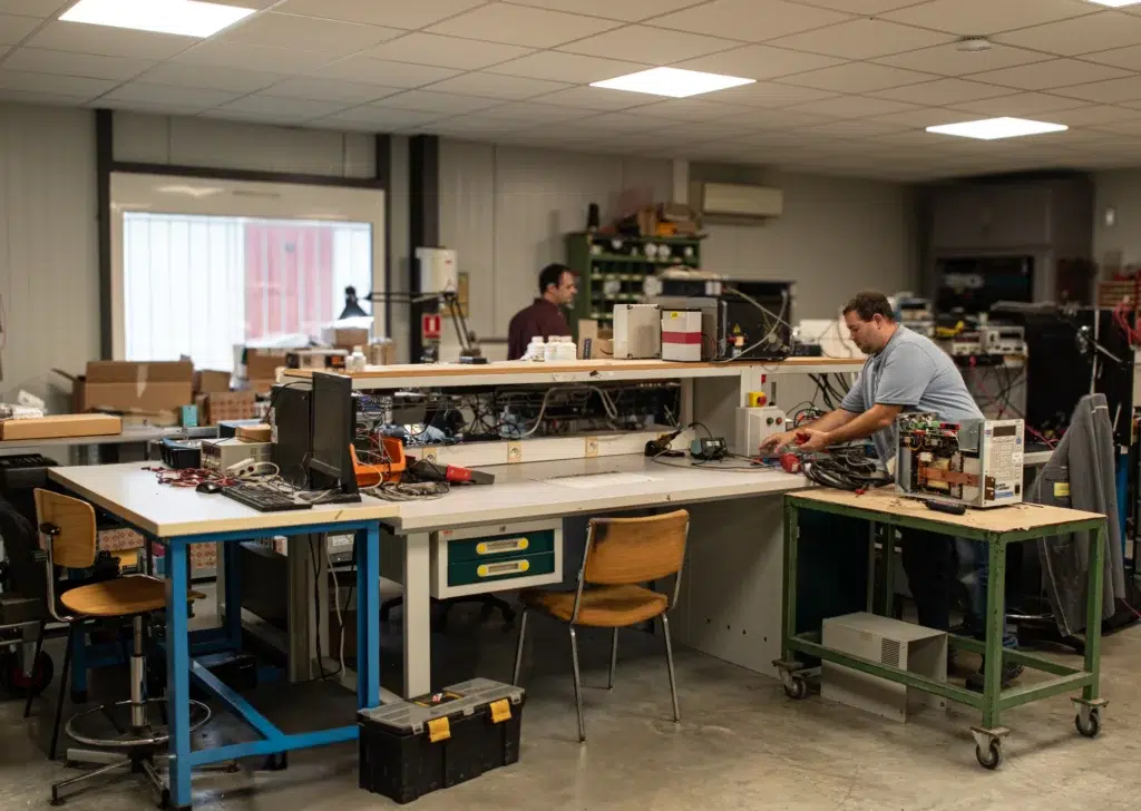 Réparer un équipement via M.E.I. est souvent plus économique que de le remplacer à neuf. En confiant votre matériel à notre atelier, vous évitez le coût d’achat d’un matériel neuf — surtout si la panne concerne un composant ou un défaut isolé. De plus, la réparation permet de prolonger la durée de vie de votre matériel, ce qui, sur le long terme, réduit vos coûts de renouvellement et limite l’impact environnemental. Enfin, dans de nombreux cas, la remise en état permet d’obtenir un appareil fonctionnel pour un tarif bien inférieur au neuf, ce qui rend l’opération rentable pour l’entreprise.